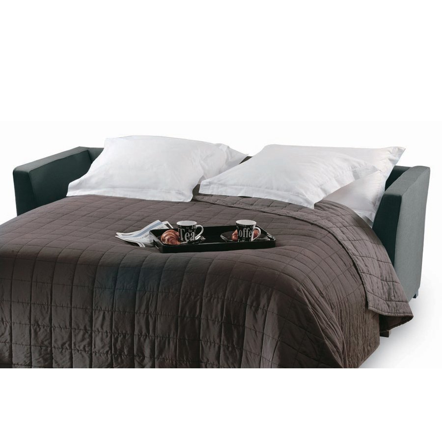 Ce canapé lit dispose d'un système Rapido qui vous permet de le transformer en lit en quelques secondes sans enlever ni les coussins d'assise et ni ceux du dossier. L'ouverture du lit se fait par renversement de dossier.