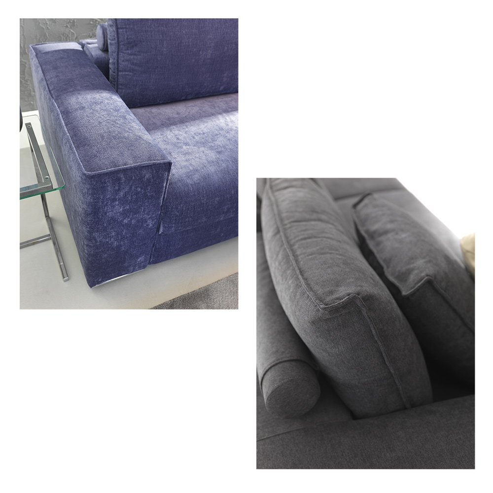 OptionsCe modèle existe en canapé d'angle. Un grand choix de tissus est disponible en magasin.