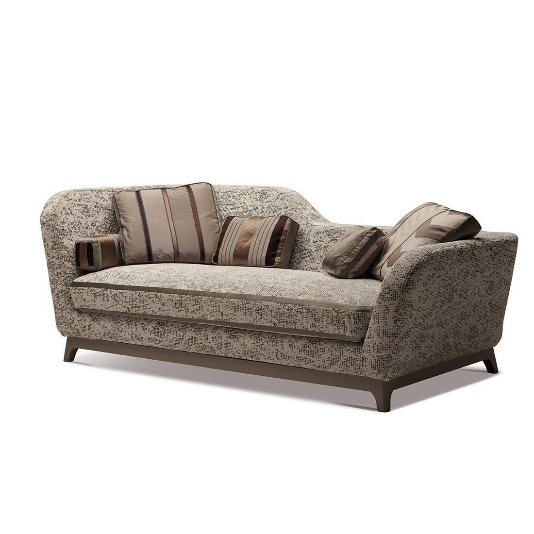 Le tissu du modèle Glamour est gris texturé avec bandes et base laquée en couleur taupe. Les coussins, inclus, sont en teinte unie et à rayures. Ils sont garnis de plumes d'oie et de canard blanc, de fibre polyester et revêtus en toile polyester et coton.