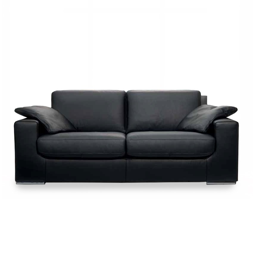 Le canapé convertible noir Bruges vous est proposé en vente en ligne avec un couchage quotidien de de 120 à 160 cm de largeur. Les coussins de déco sont en option.