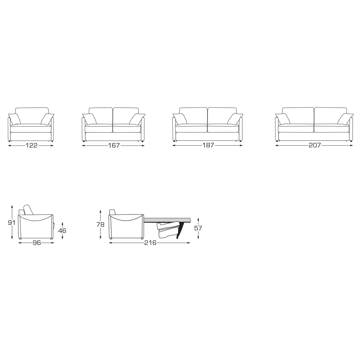 Le modèle Opéra existe dans d'autres dimensions, notamment en fauteuil convertible et en petit canapé convertible.