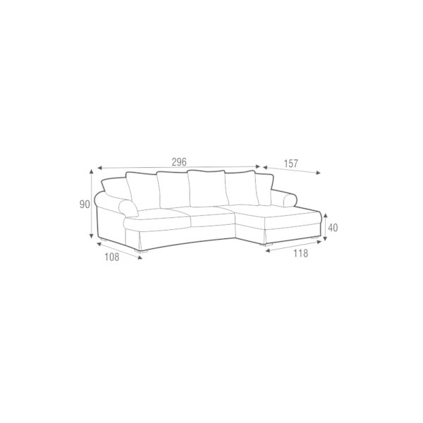 DimensionsLargeur : 296 cm - Hauteur : 90 cm - Profondeur : 108 cm / 157 cm - Hauteur d'assise : 40 cm