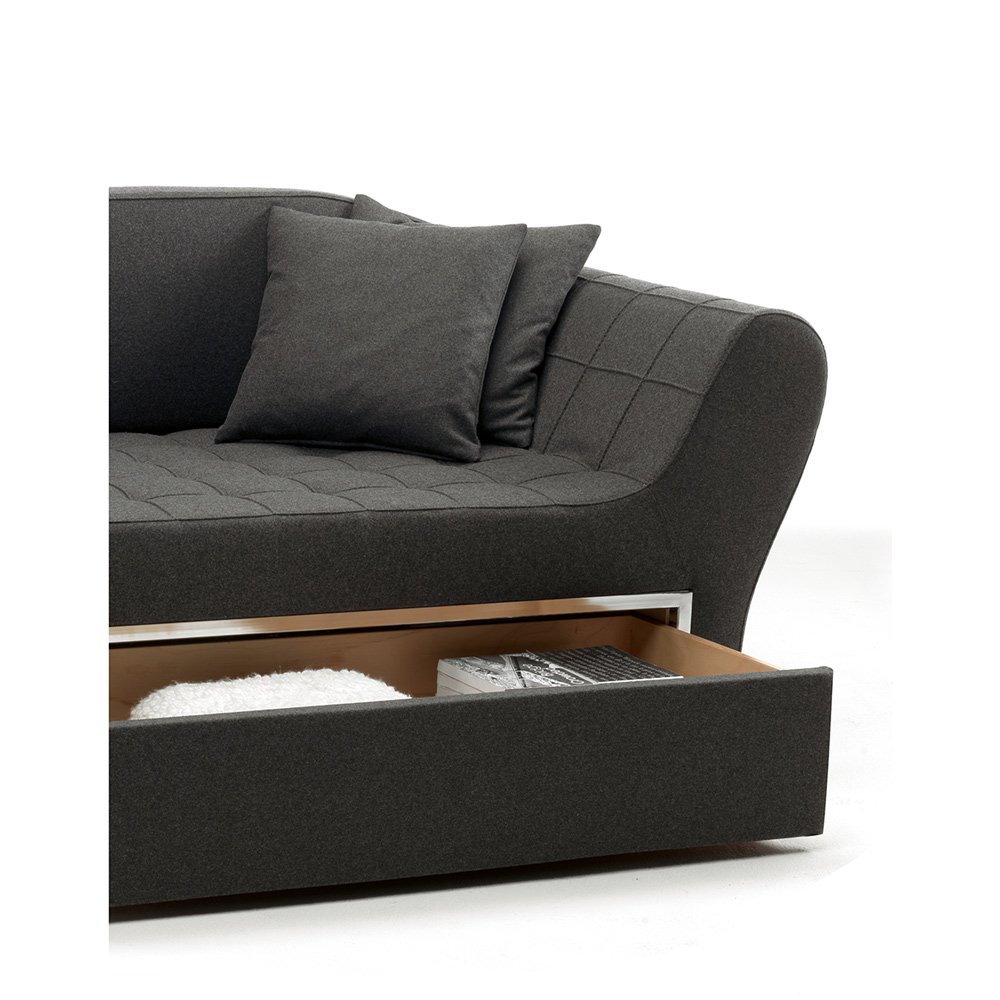 En ouvrant ce qui semble être un tiroir, vous découvrez un couchage pour 1 personne qui peut venir s’associer à l’assise principale pour proposer un double couchage disponible en quelques secondes. Un gain de place facilement et rapidement accessible !
