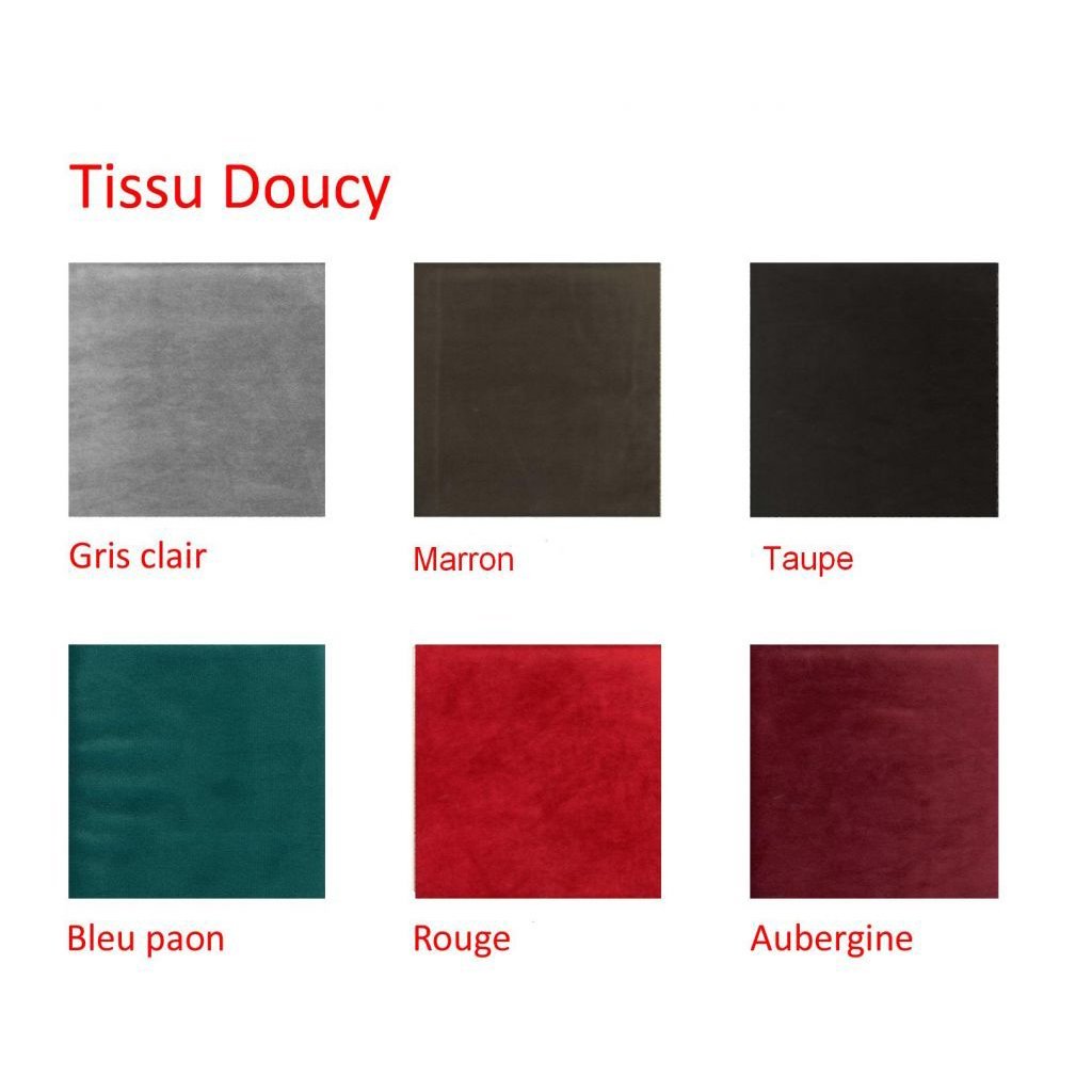 Tissu proposé en vente en ligneLe tissu Doucy est composé à 90% de polyester et à 10% de coton (effet velours)
