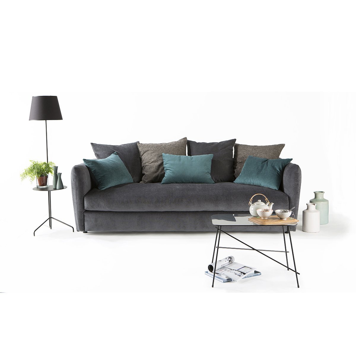 Le canapé velours Reims 3 places est muni de 3 coussins 60x60 cm et de 2 coussins de 45x60 cm.