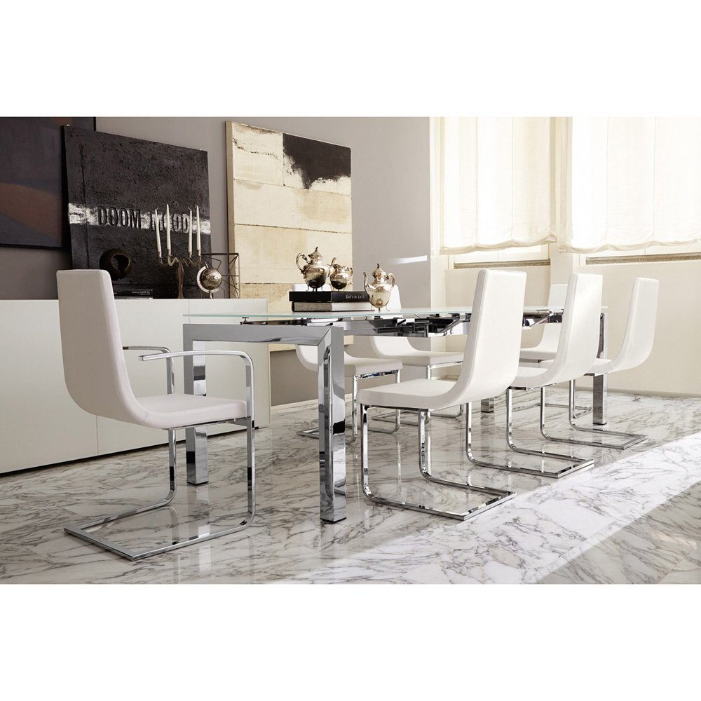 De forme audacieuse, le piètement cantilever est en acier tubulaire à section rectangulaire, une solution qui donne de la légèreté tout en préservant la robustesse, alors que l’assise monocoque est rembourrée en caoutchouc d’épaisseur variable.