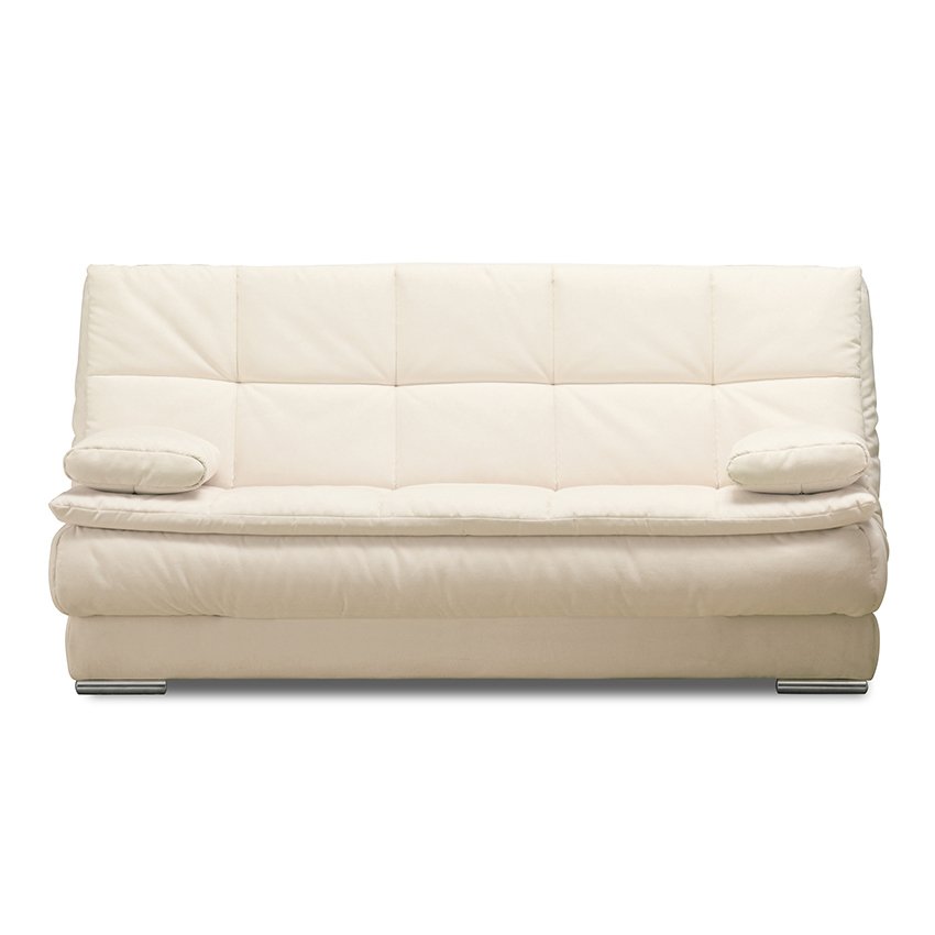 Ce canapé clic-clac existe dans un large choix de tissus disponible en magasin.