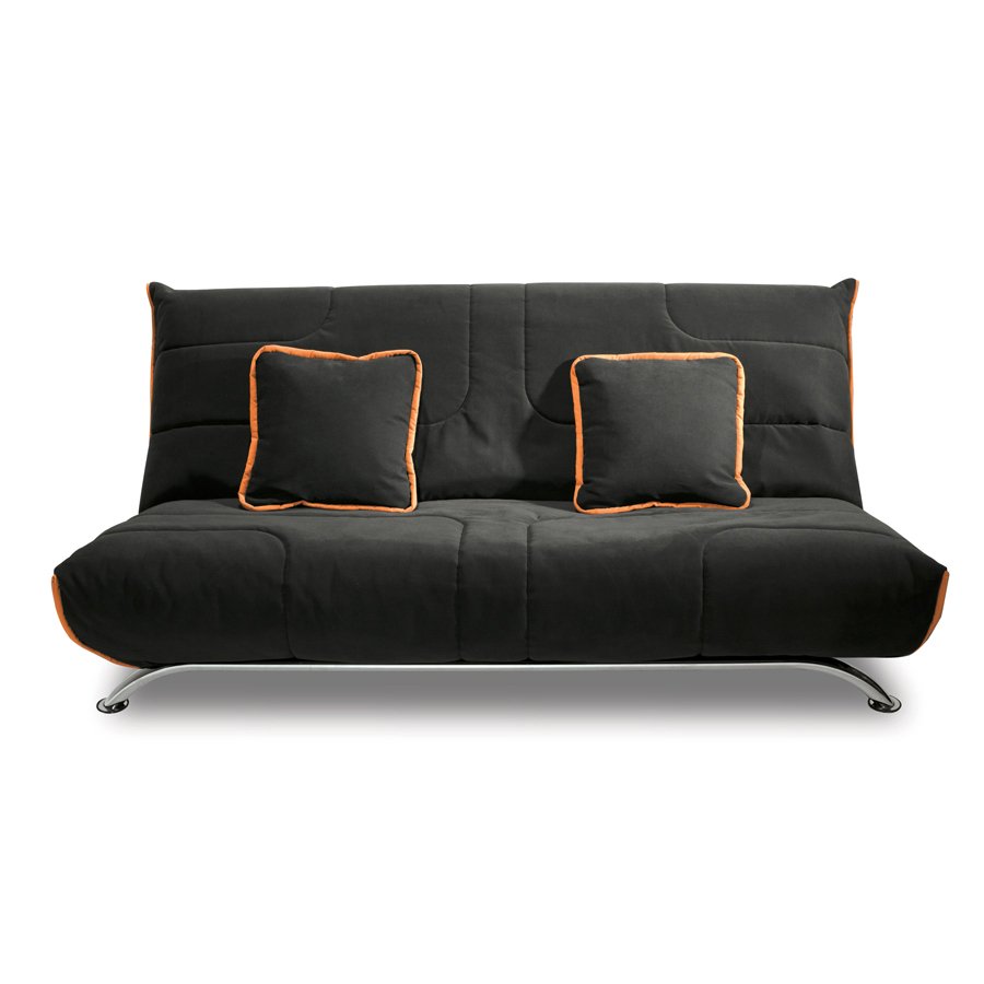 Ce canapé clic-clac existe dans un large choix de tissus disponible en magasin.