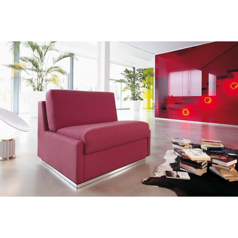 Ce fauteuil convertible dispose d'un garnissage en polyuréthane haute résilience. Il est possible de garnir ce fauteuil d'un mélange de polyuréthane et plumes certifiées “Assopiuma” en option.