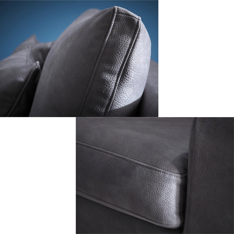 Son assise standard est composée d'un coussin unique garni de mousse polyéther 30 kg/m³, mousse haute résilience 23 kg/m³ et calotte mousse polyéther 17 kg/m³. La suspension d'assise est composée de sangles élatiques croisées.