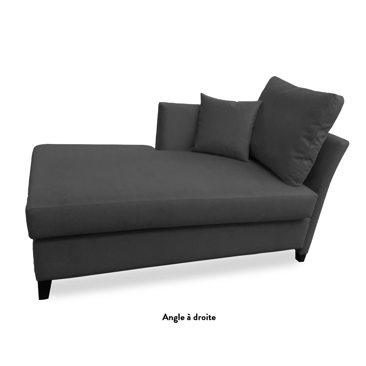 Cette méridienne grise existe aussi en convertible et dans un grand choix de finitions (tissus et pieds). Elle peut être réalisée dans des dimensions sur mesure au centimètre près sur demande en magasin.