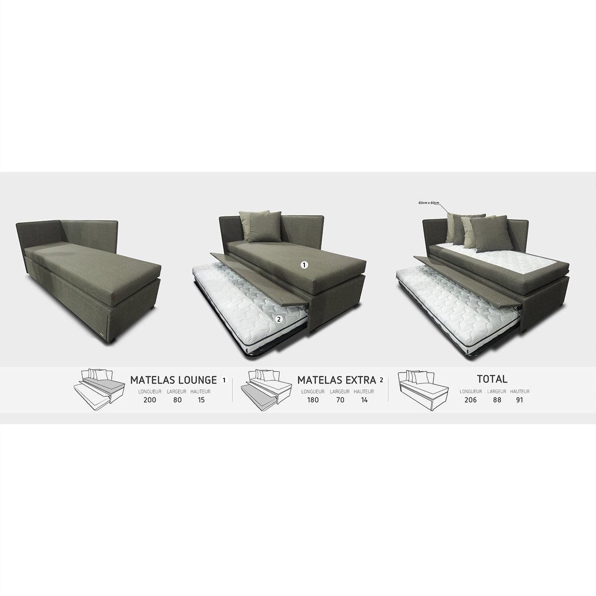 La méridienne lit gigogne Lounge, sobre et moderne, vous séduira par son aspect pratique. A la fois lit et canapé, il sera votre solution gain de place idéale. Aménagez votre intérieur au gré de vos besoins grâce à la méridienne gigogne Lounge !