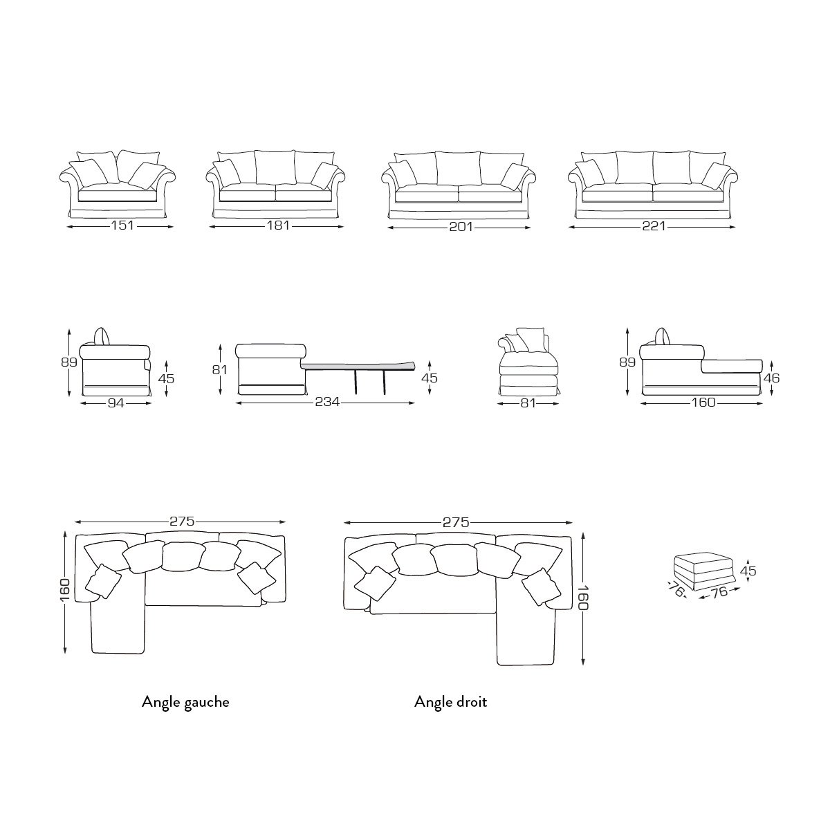 DimensionsLargeur : 81 cm - Hauteur : 89 cm - Profondeur : 160 cm - Hauteur d'assise : 46 cm