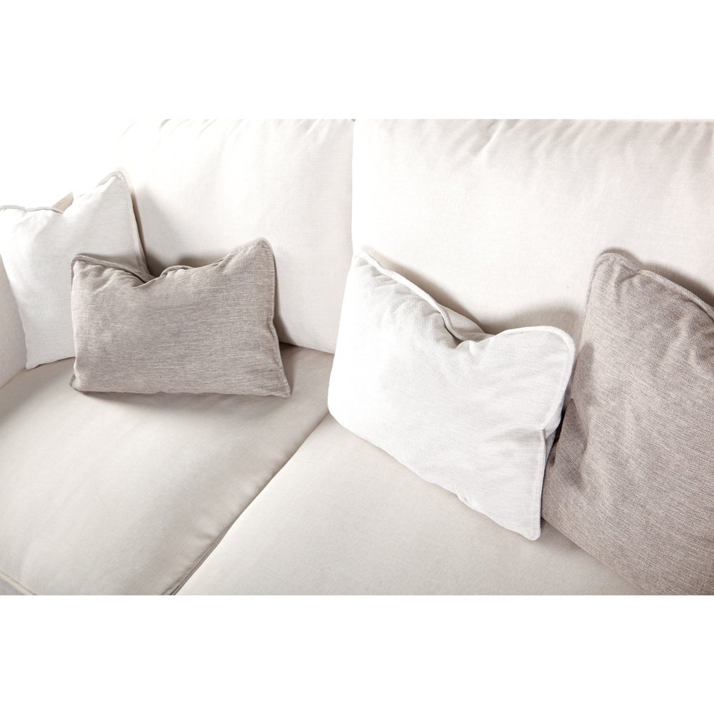 Le Petit Canapé Blanc Grenoble est vendu soit sans coussin de déco, soit avec 4 coussins déco tels que sur la photo, soit 1 coussin carré blanc, 1 coussin carré gris-beige, 1 coussin rectangle blanc et 1 coussin rectangle gris-beige. Les coussins carrés ont une dimension de 40x40 cm et les coussins rectangulaires de 30x50 cm.