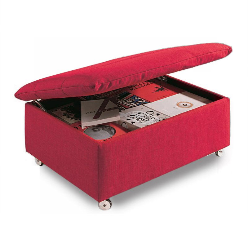 Ce pouf dispose d'un coffre de rangement intégré très pratique. Il peut être associé au canapé convertible Wagram ou à d'autres canapés.