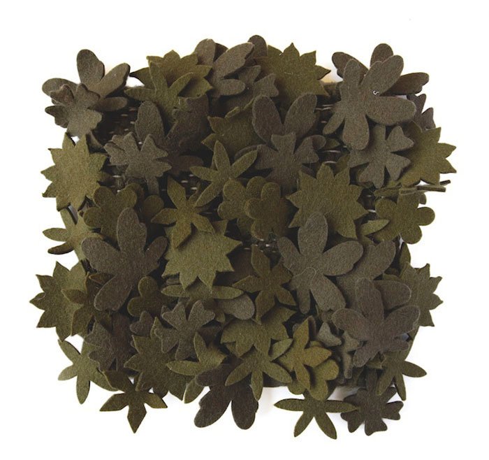 La nature se glisse dans la maison grâce à ce tapis constitué de petites fleurs en feutre tissées.